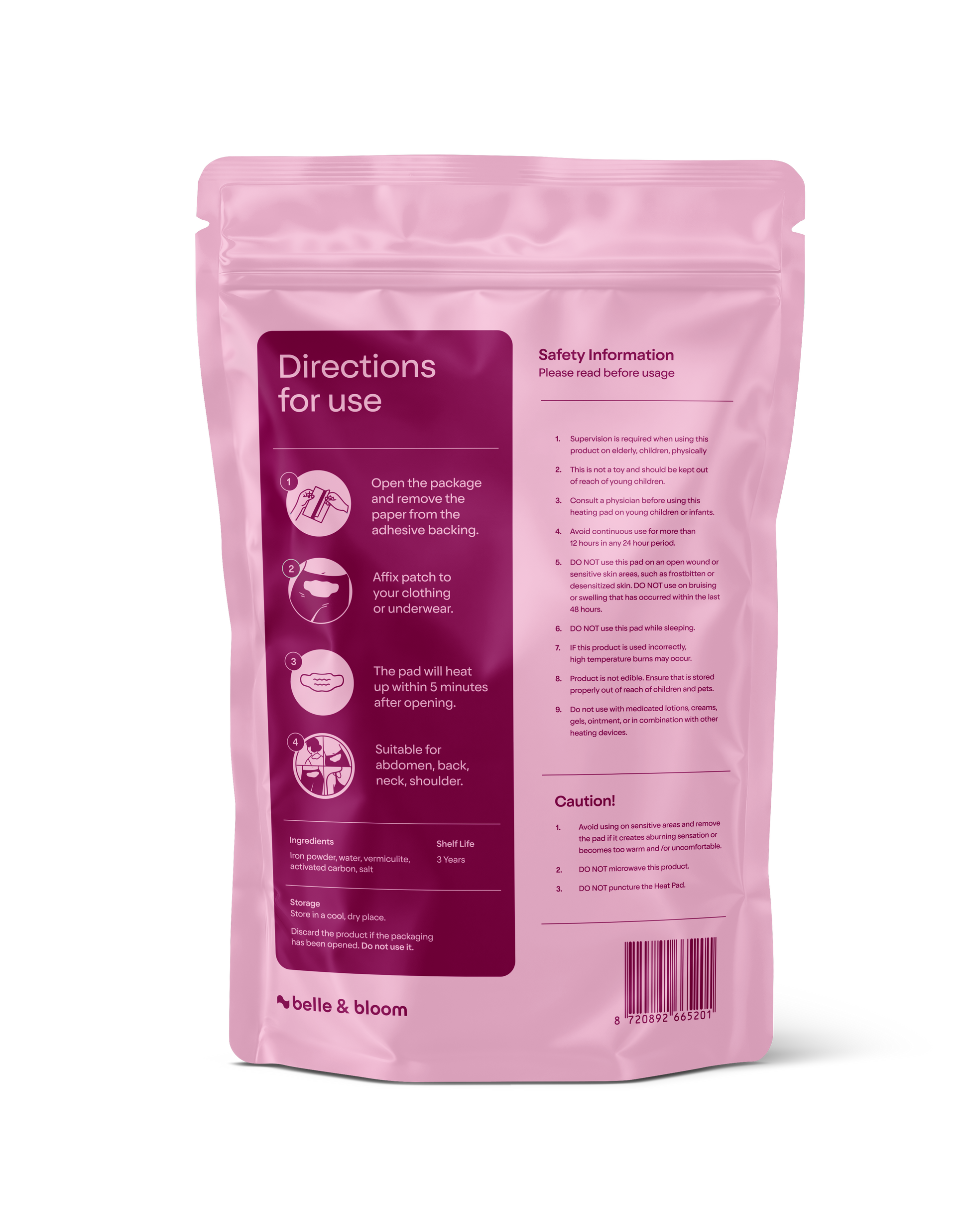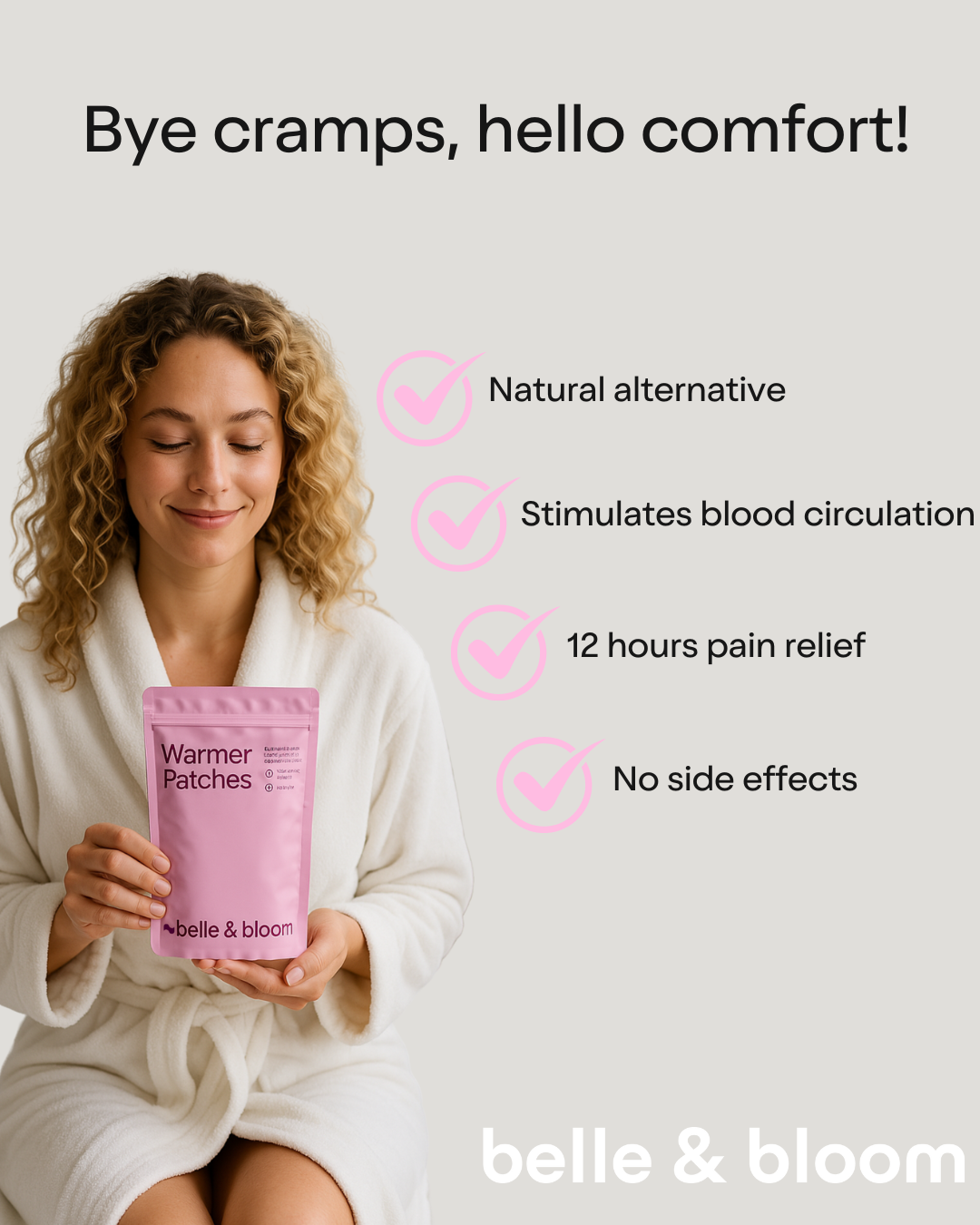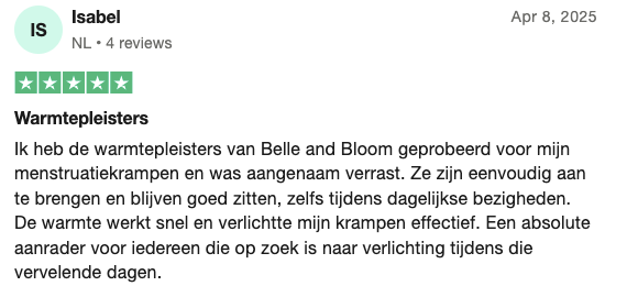 De Belle & Bloom warmer patch biedt directe, langdurige warmte om krampen te verlichten en gespannen spieren tijdens je menstruatie te ontspannen.