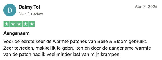 De Belle & Bloom warmer patch biedt directe, langdurige warmte om krampen te verlichten en gespannen spieren tijdens je menstruatie te ontspannen.